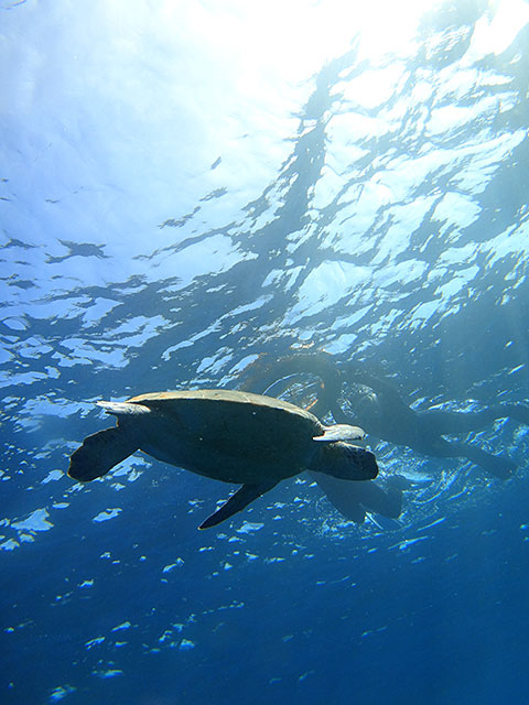 シュノーケリングはうねりも収まってきていた底土に行って、こちらも沖まで出ていって、アオウミガメも見られたそうで、