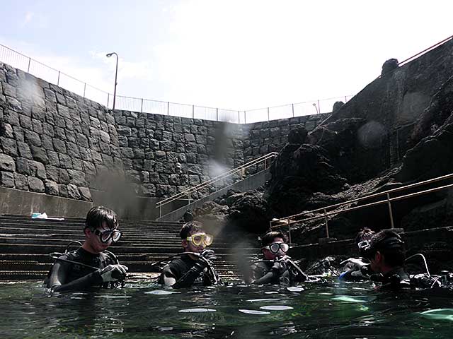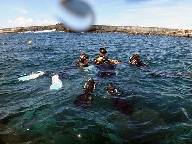 Cカードをお持ちの方もおりましたが、初めての方がいたので、体験ダイビングは八重根のタイドプールで呼吸や耳抜きの練習をして、ちょっと耳抜きがやりづらい方もいらっしゃいましたが、ゆっくり時間をかけて海に慣れて頂いて、