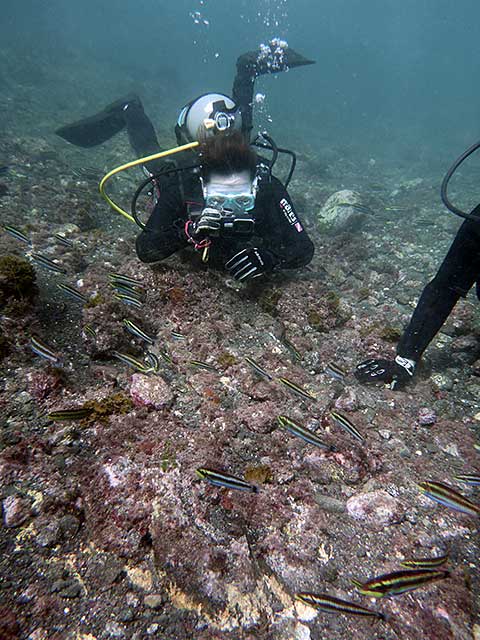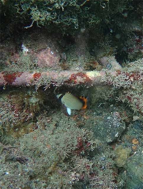 浅くもあるんで安心してじっくり潜ってワラワラ集まるニシキベラなんかを見つつ、綺麗な魚達や、砂や海藻に隠れている色々な海の生き物たちを見たりして、穏やかな海の中を魚に囲まれながらのんびり楽しんで頂きました。