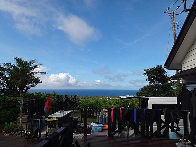 雲が多めで山の上の方は雨も降ってそうな感じでしたが、海岸線は晴れてもいて微妙なうねりは残ってますが、本日は八重根で体験ダイビングと、底土でシュノーケリングです。
