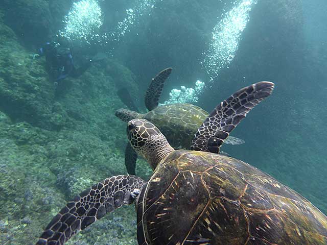 午後の八重根は若干の濁りとうねりもありましたが、たくさんの魚とウミガメを見て頂けました。
