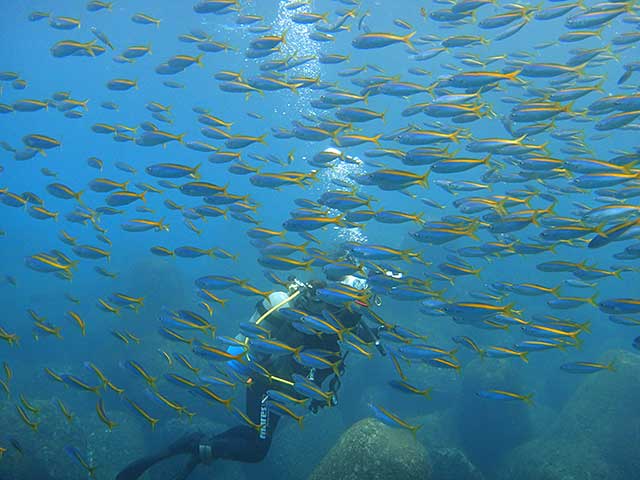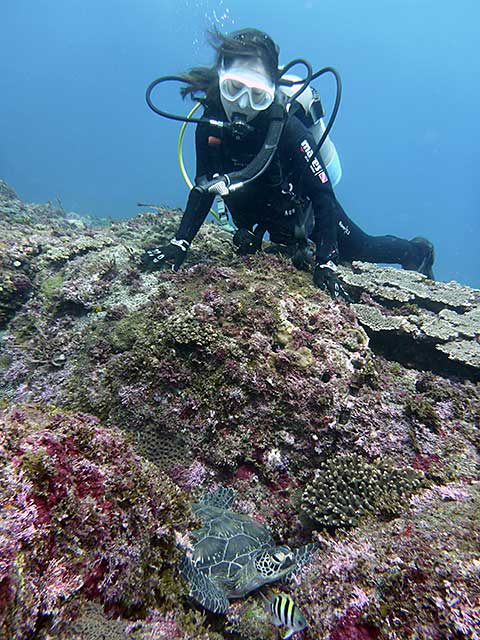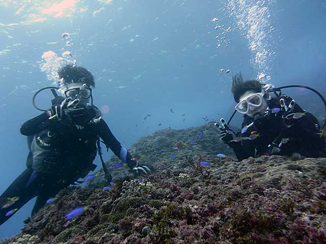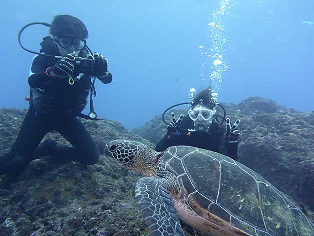 はじめての方にもおすすめの八丈島での体験ダイビング、初心者やブランクでも安心のガイドダイブ、丁寧でしっかりとしたPADI Cカード取得講習など、なによりもお越し下さるみなさまとの出会いを大切している東京から飛行機ですぐの八丈島のダイビングショップです!! []