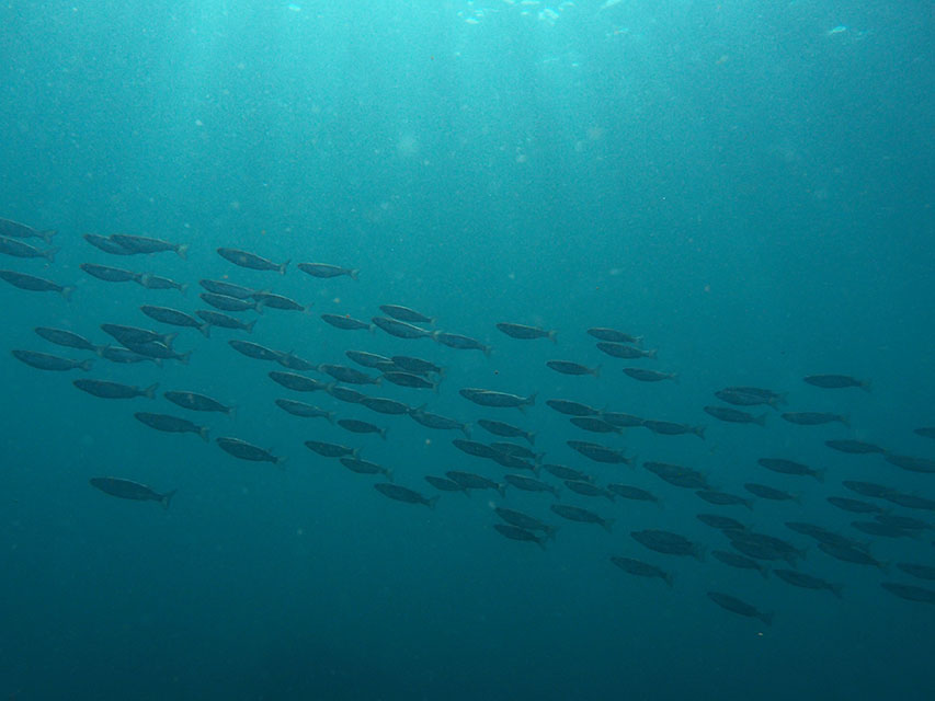 外海にでると若干のうねりはありますが、汽水域の湾内はとっても穏やかで、ボラの子どもやタカベの子ども、メジナの子どもなんかもワラワラいたりで、下の方には、クロユリハゼの子ども達もたくさんいて、とりあえず、魚たくさんな雰囲気も味わえたり、