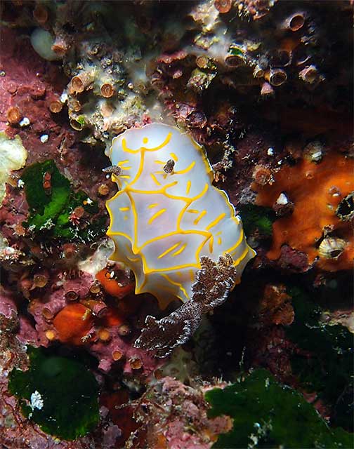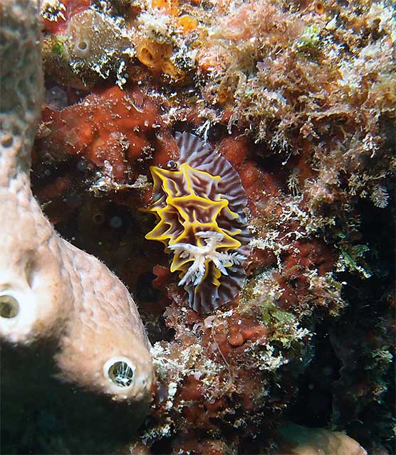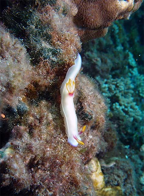 あとは、パイナップルウミウシにキスジカンテンウミウシ、ゾウゲイロウミウシにキャラメルウミウシ、ミカドウミウシなんかのウミウシ達もいたりして、台風11号の影響でグズつく空模様でもありましたが、海の中夏っぽくなっておりました。