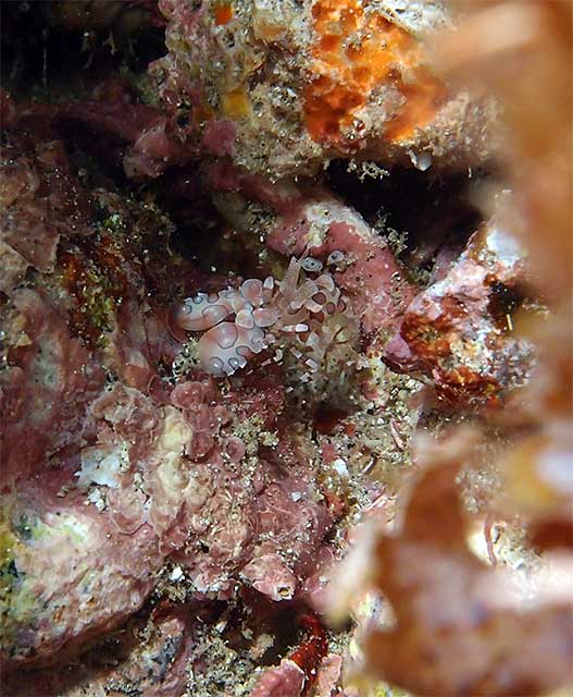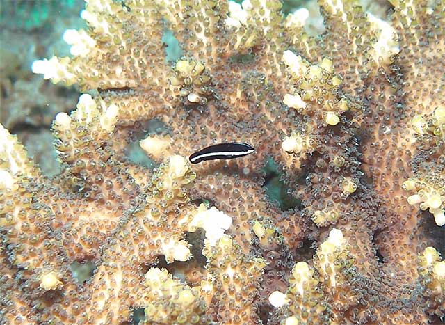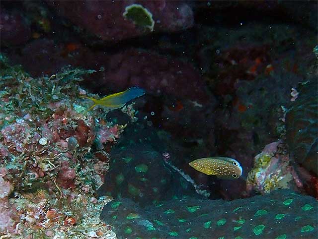 ホシススキベラやブチススキベラ、オビテンスモドキの子ども達はいろんなところで目について、隙間を覗けばミナミハコフグの子どもなんかもフヨフヨしていたり、ほかにもフリソデエビの子どもやコノハガニなんかもおりました。