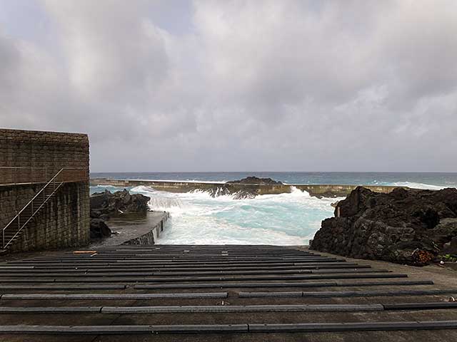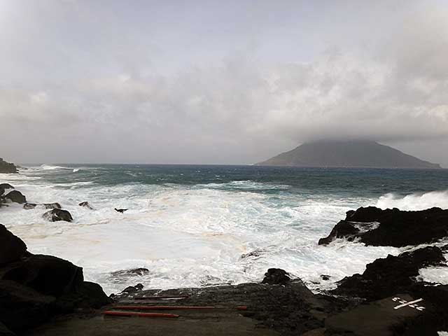 南からの風が強く時折雨も降ってきていた今日の八丈島。海の方は、南西側はうねりが収まらずですが、北東側のうねりは収まってきている感じでした。