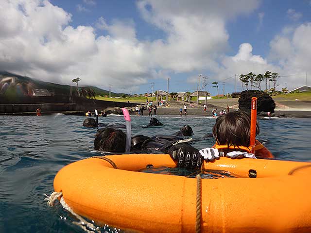 雲は多くもありますが、暑さも青空も夏の陽気となりまして、本日は底土でシュノーケリングです。