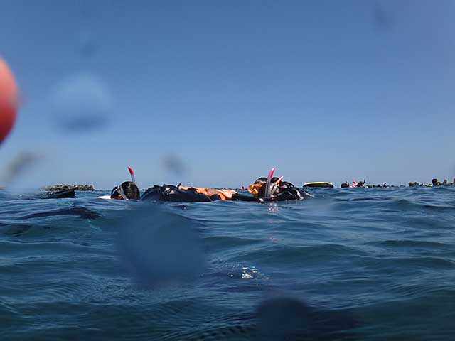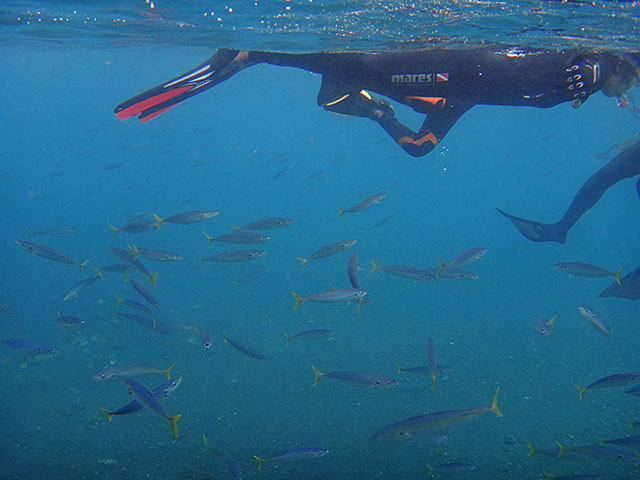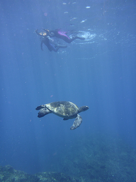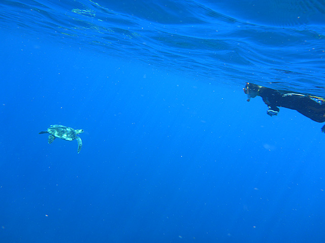 今日もかなり泳ぎはしましたが、キビナゴの群れやメジナの群れ、アオウミガメも見られたりで、夏の蒼く澄んだ気持ちのよい海を楽しんで頂けました。