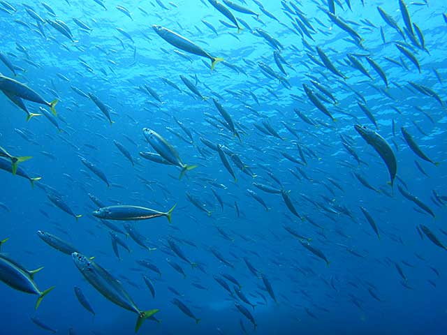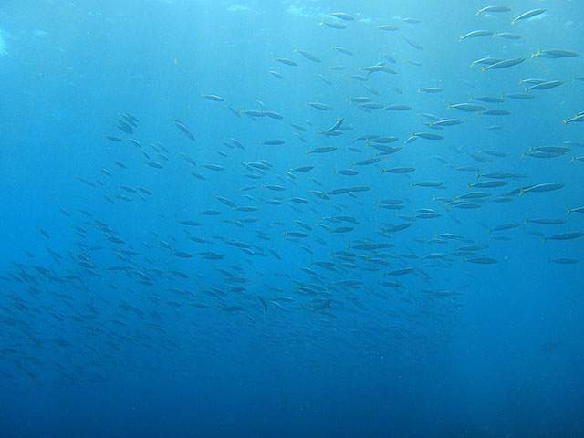 ムロアジ以外にも、キホシスズメダイの群れや、テンジクダイの子どが集まっていたり、タカベの子ども達も入っていたりして、カンムリベラの子どもやシマタレクチベラの子ども、ブチススキベラの子どもに、オビテンスモドキの子どもなんかもいたりして、