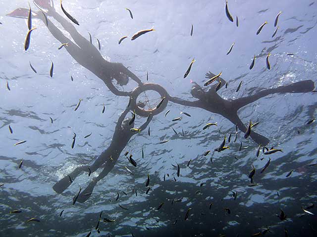 アーチの奥ではイナダっぽやつらが周ってきていたり、ツバメウオやアオウミガメのちっこいのががぼーっとしていたり、